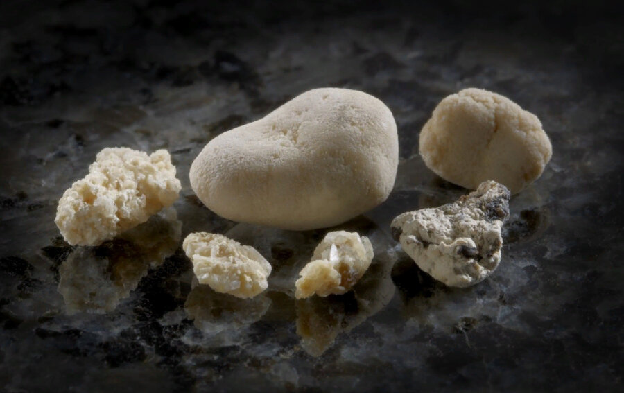 ● Карбонатные камни – кальциевые соли угольной кислоты. Бывают различной формы, мягкие и гладкие на ощупь.