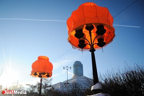 В Екатеринбурге уличный художник Тимофей Радя в седьмой раз установил оранжевые абажуры
