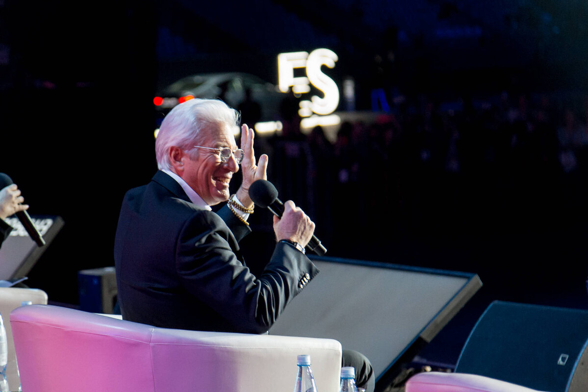 Известный голливудский актер, обладатель «Золотого глобуса», Ричард Гир, выступил в Москве на Synergy Global Forum 2018. На сцене спорткомплекса Олимпийский Гир рассказал участникам форума о начале своей карьеры, терпимости, отношении к женщинам и любви. Лучший совет, который Ричард Гир получил в начале своей карьеры На съемках одного из фильмов директор съёмочной группы посоветовал Ричарду не отдаваться целиком каждой сцене, немного сдерживать себя и позволить истории развернуться естественным образом. Этим советом он руководствуется до сих пор. Что позволяет достигать успеха в актерской деятельности? Ричард - играет в кино с19 лет. Он был участником многих региональных театров США и Англии. Именно этот огромный опыт, который лег в основу успеха актера. По мнению Ричарда, успешная карьера исходит изнутри. Все получается, когда вы находите нечто, что касается вашей души. Источники мотивации: Небольшой фактор страха: любой проект, за который берется Ричард, должен его хоть немного пу
