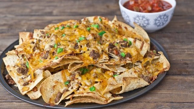 Ингредиенты:(начос) Лаваш - 1 лист (лучше тортильи) Оливковое масло Соль Базилик Острая паприка Ингредиенты: (начинка) Лук - 1 шт. Чеснок - 1 зубчик. Говяжий фарш - 400 г. Соль - по вкусу. Орегано - 1/2 ч.л. Базилик - 1/2 ч.л. Паприка - 1/2 ч.л. Томатная паста - 1 ст.л. Фасоль консервированная - 200 г. Моцарелла - 100 г. Приготовление: Берём лаваш, режем его на треугольники, добавляем специи, оливковое масло и хорошо перемешиваем. Выкладываем на пергаментную бумагу и выпекаем 5-7 минут при 180 градусах. Далее на оливковом масле хорошо обжариваем лук и чеснок, добавляем фарш, затем помидоры, специи и томатную пасту, хорошо перемешиваем, накрываем крышкой и тушим 10 минут на слабом огне. Затем добавляем фасоль, выкладываем сыр, снова накрываем крыкой и ждем 3-4 минуты. Подписывайтесь и ждите множество интересных рецептов, также жду ваших комментариев;) Приятно аппетита:) С любовью, J ♥