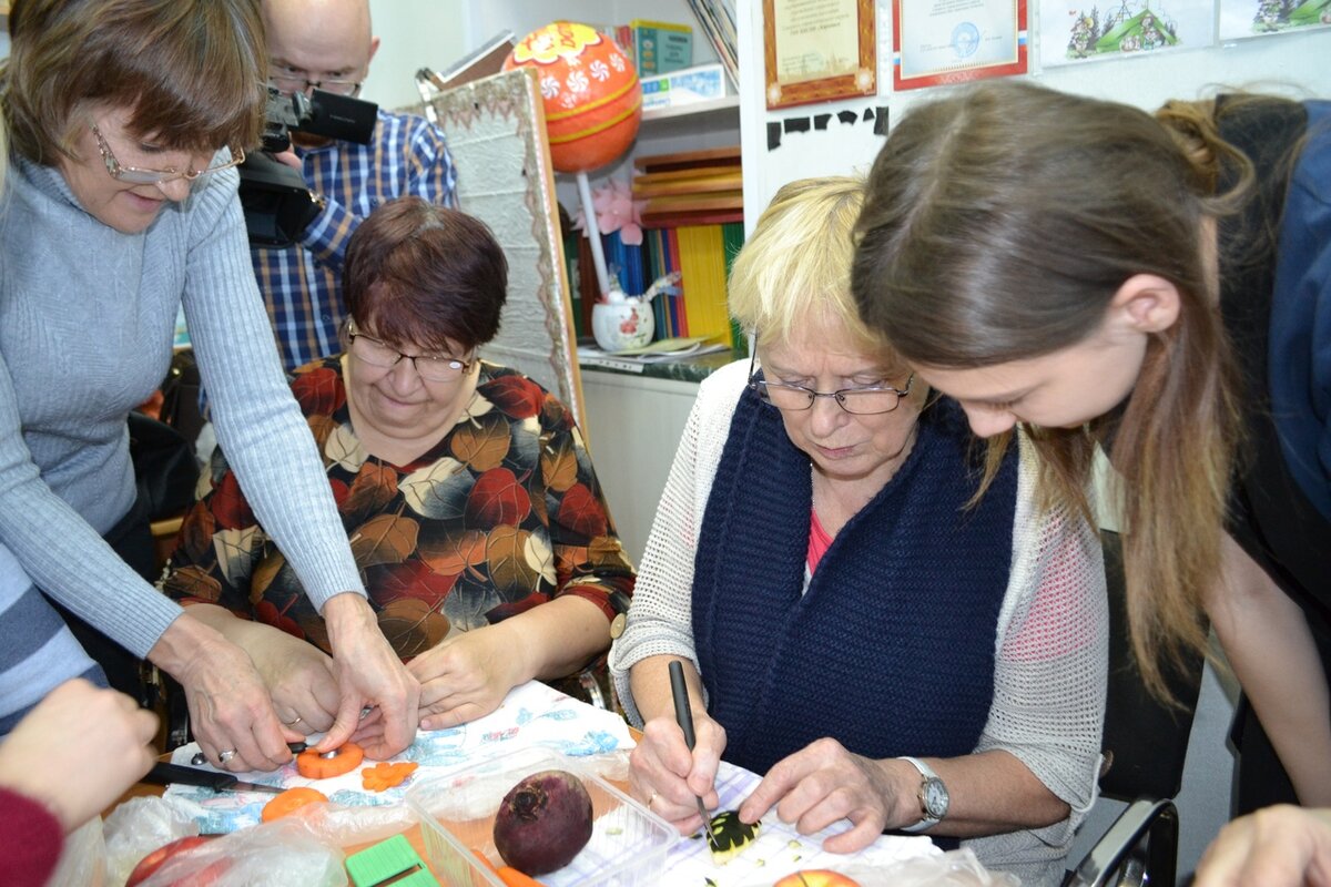 Комплексный центр социального обслуживания населения пригласил карпинцев старшего поколения на занимательный кулинарный мастер-класс по карвингу – искусству художественной резки по овощам и фруктам. Урок состоялся в рамках «Школы пожилого возраста» по направлению «Творческая и прикладная деятельность». Напомним, что «Школы пожилого возраста» появились в Свердловской области ещё в 2011 году под эгидой региональной комплексной программы «Старшее поколение». «В 2012 году «уроки» для пенсионеров были востребованы у почти 20 тысяч человек, в 2013 году – более чем у 50 тысяч, дальше – число желающих только увеличивалось. Самые популярные направления – «Активное долголетие», «Творческая и прикладная деятельность», «Социальный туризм» и «Компьютерная грамотность», – отметил министр социальной политики региона Андрей Злоказов. Регулярно по всей области проходят кулинарные курсы, уроки и мастер-классы для пенсионеров. Их организаторы отмечают, что пожилые люди всегда активно и с большим энт