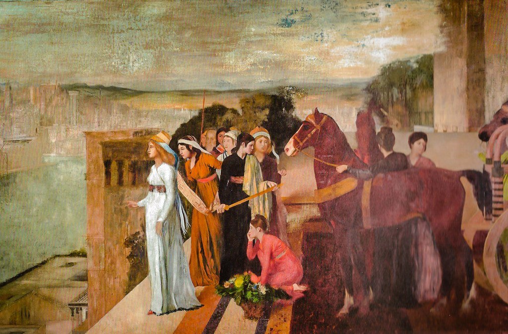 "Семирамида, строящая Вавилон". Автор картины - французский художник Эдгар Дега (фр. Edgar Degas; 19 июля 1834, Париж — 27 сентября 1917), один из виднейших и оригинальнейших представителей импрессионистского движения. Картина написана в 1861 году, хранится в музее Орсе (Musée d'Orsay) в Париже. По сюжету картины. Некоторые античные греческие и римские авторы приписывают легендарной царице Семирамиде основание города Вавилон. Например Страбон ("География", глава XVI 1, 2 ): Когда историки сирийской державы сообщают, что мидян покорили персы, а сирийцев — мидяне, они имеют в виду не каких-либо других сирийцев, но именно тех, которые построили в Вавилоне и Нине свою столицу. Одним из этих сирийцев был Нин, который основал город Нин [Ниневию] в Атурии. Супругой Нина была Семирамида, ставшая преемницей мужа; она основала Вавилон. Проперций. (Элегии III 11, 21-26) Семирамида воздвигла Вавилон, цитадель Персов,