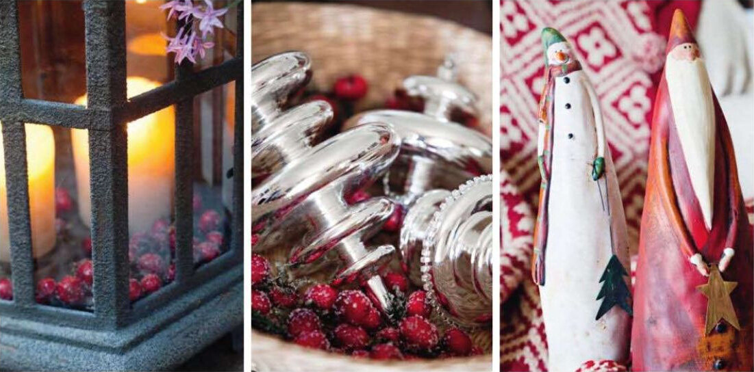 Благодаря таким акцентам, рождественские украшения в помещение не только гармонируют с интерьером, но и становятся частью его. Обратите внимание, что отсутствие ели, гирлянд, носков у камина и свечей обеднит данную композицию, и она перестанет восприниматься целостно.