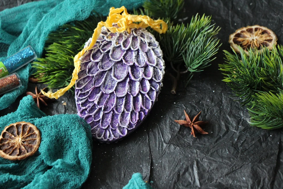 Новогодний декор плоской заготовки-подвески. Просто, но очень эффектно! Любая плоская заготовка может превратиться в очаровательную шишечку и украсить новогоднюю ель или венок! Необходимые материалы: • плоская заготовка из фанеры; • мастихины разной формы; • рельефная паста; • акриловые краски: фиолетовый, розовый яркий, белила титановые; • кристальная паста; • акриловый лак и блестки; • кисти. Подписывайтесь на канал! Оценивайте работу! Комментируйте! :)
