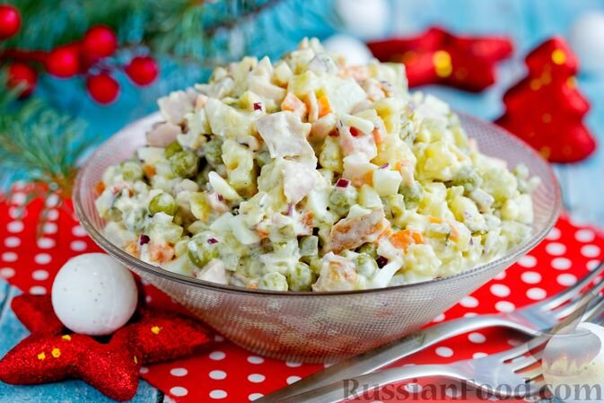Есть такие блюда, без которых новогодний стол представить сложно. По праву мы называем их традиционными новогодними блюдами, закусываем ими шампанское. Вот эти герои новогоднего стола! Холодец — стола венец! Поел холодца — пробудил в себе молодца! А силы в новогоднюю ночь понадобятся каждому. Утка с яблоками. Птица, с которой принято праздновать приход Нового года. Новогодняя утка обычно занимает самое почетное место в центре стола. Фаршированные яйца. Простая закуска на новогоднем столе для любителей "старой школы". Ностальгируйте вместе с нами. Приготовьте, например, яйца, фаршированные печенью трески. Бутерброды с красной рыбой. Абсолютный хит под шампанское. Это как обычные бутерброды, только с новогодним апгрейдом в виде красной рыбки. Рекомендуем сделать такие бутерброды с авокадо. Ням-ням. Сельдь под шубой. Какая селёдка не мечтает о шубе! Так сделайте ей подарок на Новый год! Салат оливье. Как признанный король, он возглавляет салаты на Новый год. Все знают про классический ре