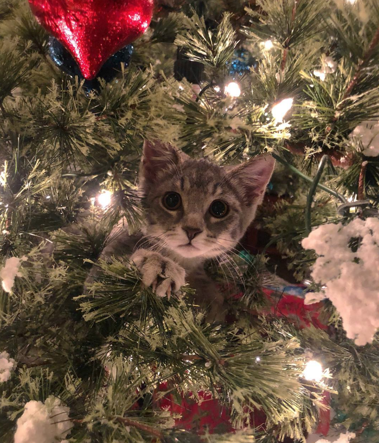 Каждый кошатник знаком с тем, что Новый Год для котов — это период большой охоты у кошек за елочными игрушками и гирляндами. По каким-то не понятным причинам, эти мерцающие штуки гипнотизируют четвероногих друзей.