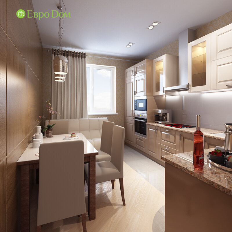 Практически во всех помещениях дизайнер заложил светодиодную подсветку потолка, она зрительно расширяет пространство, и увеличивает высоту потолка.