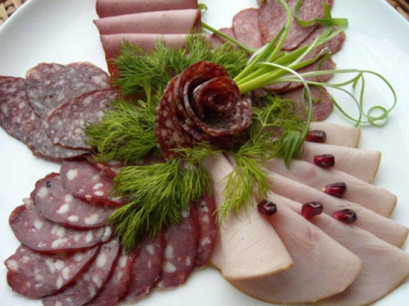 Для этой нарезки нам понадобится: колбаса московская 100-150г; колбаса сырокопченая 100-150г; сервелат 100-150г; карбонат 100-200г; говядина варено копченая 100г. Для этого простого, но очень аппетитного ассорти я взяла: сыр ( можно выбрать любой на ваш вкус); ветчина (из индейки, говядины или свинины-выбирайте); сервелат и 2-3 веточки петрушки для украшения)) Важно! Чтобы нарезка была тонкой необходимо использовать острый с тонким лезвием нож или специальный прибор для нарезки-слайсер. Также советую мягкие продукты перед нарезкой подержать в морозилке до легкого затвердевания.