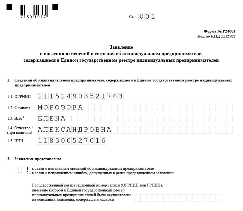 Если вы решили расширить свою деятельность, проверьте, что имеете на это право. Например, занимаетесь грузоперевозками, а теперь решили еще и торговать автозапчастями. В таком случае придется открыть дополнительный ОКВЭД, чтобы налоговая не оштрафовала вас за незаконную деятельность. Но штраф в 5 000 рублей — не самое страшное. Если работать без правильного ОКВЭД, то ИП могут отказать в возмещении НДС по этому виду деятельности, заблокировать банковский счет, перевести на общую систему налогообложения и доначислить неуплаченные налоги. Что нужно для открытия нового ОКВЭД Внесение изменений в регистрационные сведения — стандартная бесплатная процедура. Для начала выберите коды, которые подходят для вашей деятельности. Потом нужно подать заявление в налоговую по форме Р24001, указать в нем новые виды деятельности согласно классификатору ОКВЭД-2. Через 5 рабочих дней инспектор выдаст вам лист записи ЕГРИП с новыми данными. Заявление можно подать лично, через представителя с доверенностью