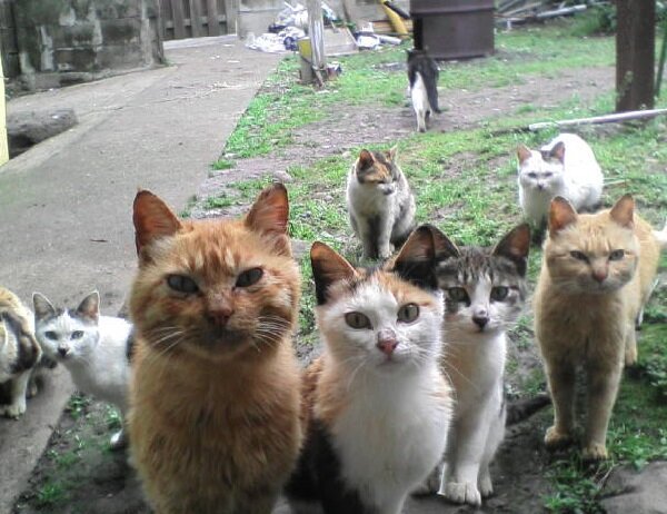 Принято считать, что уличные кошки ведут одинокий образ жизни. В одиночку живут, в одиночку охотятся...По крайней мере я ни разу не видел, чтобы уличные кошки в наших городах собирались в стаи и вместе охотились, как прайды львов в Африке. Но вот недавно свое мнение поменял. Вожу младшую дочь в школу мимо одного дома, стоящего рядом с ней (со школой). В том доме много подвальных окон и вот возле одного из них появились миски с едой и водой- местные жители прикармливали кошачий выводок, недавно появившийся там и живущий без матери-к0шки. Пять пушистых комочков разного цвета умиляли всех родителей с детьми, проходящих мимо. Отовсюду слышалось: - "Кис-кис-кис! Ой, мама, погляди, какие милые котятки! Давай возьмем одного себе? Ну пожалуйста, мам!.." Мамы тоже млели от вида играющих на солнышке разноцветных "колобков", но брать котят в дом не торопились. Потом начались затяжные дожди и котят перестали замечать- наверное они прятались в подвале . Потом были весенние каникулы...В общем, прошл