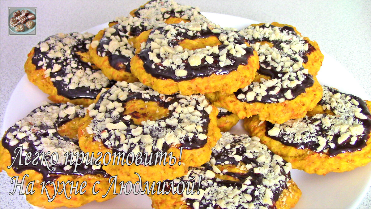 Всем привет! Сегодня я хочу предложить Вам рецепт приготовления вкусного и ароматного печенья с шоколадной глазурью и орехами. Постное Морковное печенье и Постная шоколадная глазурь. Его очень Легко приготовить! Печенье получается мягкое, пышное, ароматное и очень вкусное. Готовьте со мной! Приятного Вам аппетита! Начинаем готовить. Рецепт приготовления и список ингредиентов внизу под видеорецептом. Нажмите "пальчик вверх", если Вам понравился рецепт! Пошаговое приготовление: 1. Тесто. В миску кладу натертую на средней терке морковь, сахар, ванильный сахар, растительное масло, просеянную муку и разрыхлитель. Муки может понадобиться чуть меньше или чуть больше, чем по рецепту, так как это зависит от того, на сколько сочная морковь. И замешиваю тесто. Вымешивать тесто не нужно, достаточно просто хорошо перемешать, объединить все ингредиенты. Если тесто получилось жидковатым, то нужно добавить немного муки. Если тесто получилось суховатое и не собирается в комок, то нужно добавить немног