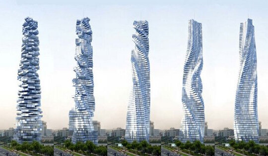 1) Концепт вращающегося здания в Дубае, Арабские Эмираты (здание пока не построено). 2) Каменный Дом, Гора Фафе, Португалия. Дом построил Виктор Родригес, устав от городской суеты, но теперь ему приходится терпеть толпы туристов. 3) Часовня Сен-Мало (Saint Malo Chapel). Построена в 1936 году в парке Allenspark, штат Колорадо, США. 4) Парк развлечений «Ferrari World» в Абу-Даби. Самый большой в мире тематический парк, расположенный в помещении. Общая площадь крыши составляет 200 000 м² с периметром в 2 200 м. 5) Храм истины (Sanctuary of Truth) в Паттайе, Таиланд. Полностью деревянный храм, высотой более 100 метров. 6) "Устройство для искоренения зла" (Device to Root out Evil) - это скульптурная композиция в виде часовни вверх тормашками. Она была создана американским дизайнером Деннисом Оппенхеймом. Это не столько дом, сколько скульп