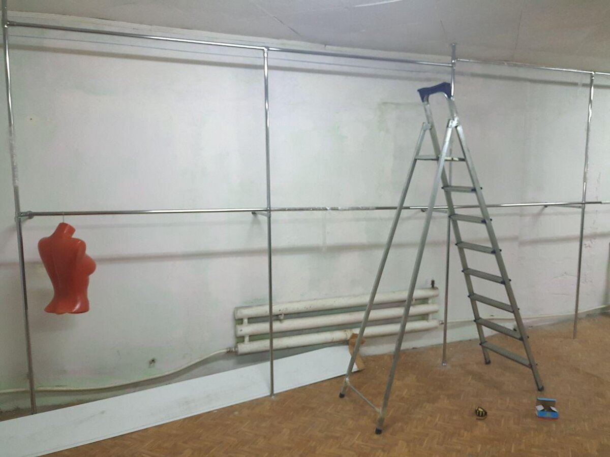 Привет! Сегодня хочу поделиться своим небольшим опытом как я делал стойки для верхней одежды для одного магазина. Мои друзья открывают магазин одежды и попросили помочь им с созданием конструкции для этой самой одежды. Выбор пал на конструкцию из алюминиевых труб из мебельного магазина. Это удобно в том плане, что можно сделать конструкцию любого размера, нужно только рассчитать длину и количество креплений. Когда всё было продумано и рассчитано, я порезал трубы болгаркой. Главное не забывать измерять всё уровнем, чтобы ничего не поплыло, ведь стены и пол были неровными. Теперь осталось соединить конструкцию креплениями из магазина мебельной фурнитуры. Крепления соединяют трубы между собой, а также трубы с полом и стеной. К стене и полу я прикрепил саморезами с дюбелями. Кстати, у всех так же соединён ключ для патрона дрели? Очень удобно, чтобы не потерять его. В креплениях были маленькие болтики, чтобы удерживать трубы, но я заменил их на саморезы, чтобы всё схватилось намертво, в