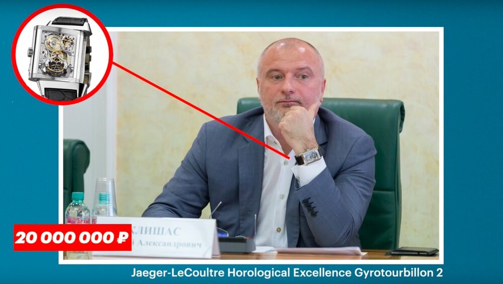 Братва во власти...Есть такой деятель в совете Федерации по фамилии Клишас. У него есть коллекция часов стоимостью в 163 миллиона рублей. Самые дорогие в 32 миллиона рублей. 32 сложных часов. Коллекция за 163.000.000 рублей. Зачем ему это? Для тщеславия. Есть у чОтких пацанов такая слабость... Эпиграф к статье- цитата: За каждым большим состоянием кроется преступление ( Слова из произведения "Отец Горио", часть II (1835 г., Le Père Goriot)) французского писателя Оноре де Бальзака ) В Википедии пишут, что это сенатор предприниматель. Но предпринимателем он никогда не был, но зато был юристом на залоговых аукционах в 90 е годы. Навальный открыл по этому персонажу расследование и выяснилось, что у этого сенатора 3 дома в престижных районах Москвы типа Рублевки, и дом в Локарно (Швейцария). Чем же знаменит этот деятель? Что привлекло внимание Навального и журналистов к этому персонажу? Тем, что он хочет закрыть гражданам доступ к интернету и сажать людей за неуважение к власти. Понимаете