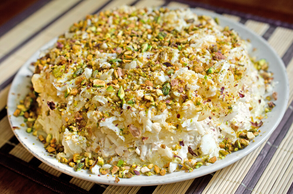 - Сыр покрываем слоем майонеза, а сверху выкладываем измельченные грецкие орехи.