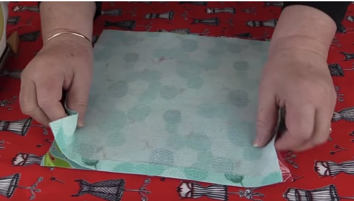 Для начала вам необходимо отрезать два одинаковых квадрата или прямоугольника из ткани. Разровняйте отрезы ткани и сложите их лицевой стороной друг к другу.