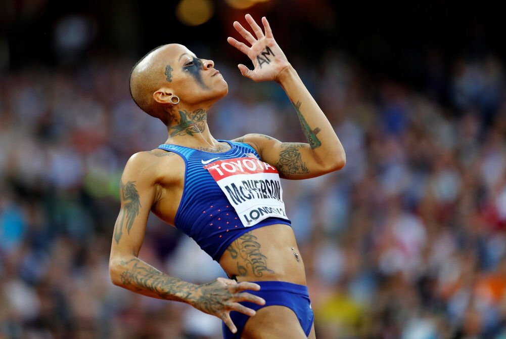 Легкоатлетка Иника Макферсон, произвела фурор на чемпионате мира 2017 и не только благодаря своей оригинальной внешности, а буквально поразив болельщиков и специалистов своим результатом. Ни кто из тренеров, не ожидал от неё 4-го места на соревнованиях. Выглядит спортсменка из США и вправду, очень оригинально, но, вот её рост всего 163 сантиметра и результаты которые она показывает в секторе для прыжков в высоту, граничат с фантастикой. В России, к примеру, её бы сразу забраковали и даже ради смеха не дали бы попробовать себя в этой дисциплине. Судите сами. В тройке призёров, самый низкий рост был 179 см, а если вспомнить, к примеру Бланку Влашич с её 193 см, то в результаты Макферсон, верится с трудом. Тем более, что и в спорт она пришла относительно поздно в возрасте 12-ти лет. На момент чемпионата мира ей было 30, до этого была дисквалификация сроком 21 месяц за употребление кокаина. Работа таксистом, ведь их спорткомитет, не поддерживает атлетов, деньги они зарабатывают только за в