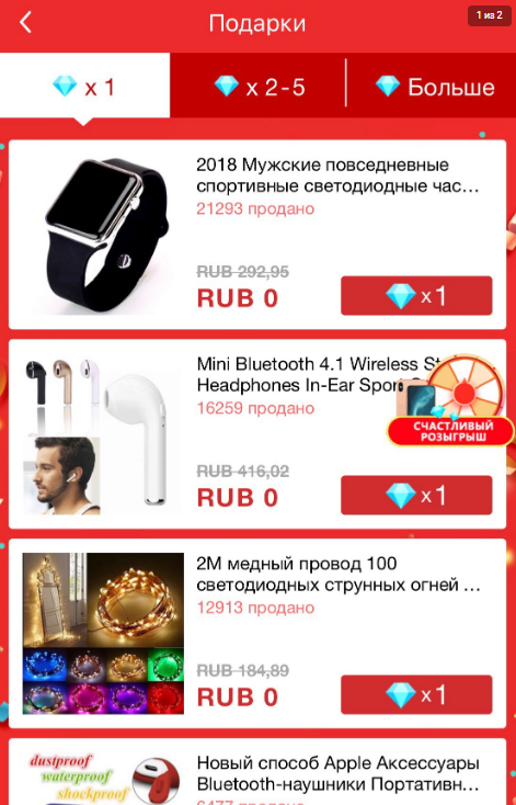 Сегодня я расскажу вам об очень интересном сервисе на подобии AliExpress, где за 1 алмаз, который получишь после регистрации, ты сможешь заказать любой товар из китая, до 1000 рублей. Ассортимент бесплатных товаров очень большой: А вот вам ценники на более дорогие товары, которые вы сможете заказать на заработанные алмазы: Ладно, теперь ближе к делу, давайте расскажу вам как сделать заказ.