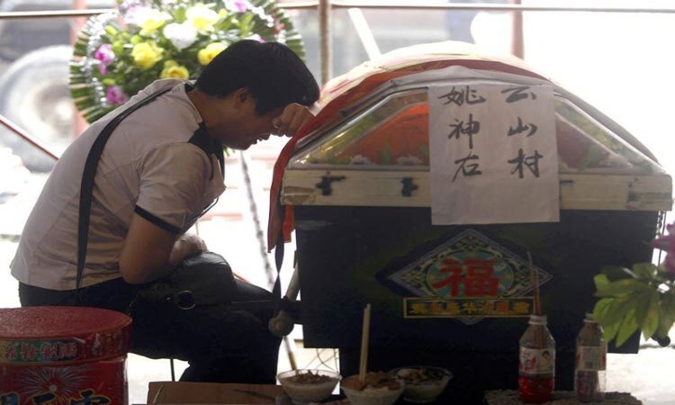 Его сердце перестало биться, отсутствовали какие-либо признаки жизни, а тело остыло. Но… В китайской провинции Сычуань едва не был похоронен заживо 75-летний старик. Его сердце перестало биться, отсутствовали какие-либо признаки жизни, а тело остыло. Врачи подтвердили смерть, разрешив проведение похорон без вскрытия, сообщает портал Еxpress. Родственники и сын умершего положили тело деда в гроб и отнесли его на кладбище. Никто даже не обращал внимания на некоторую странность в ходе несения гроба: крышка с него постоянно сползала. Спирая на брак при изготовлении, ее просто ставили на место. Когда они прибыли на место и начали прощаться с умершим, сняв крышку из гроба, оказалось, что в нем лежит живой, но совершенно ослабленный дедушка. Как оказалось, он все время, когда его несли на кладбище, хотел скинуть крышку и спросить, что происходит и почему его закрыли в каком-то ящике? Когда дед встал из гроба и увидел собравшихся родственников и венки, то спросил у сына: вы, что меня хороните