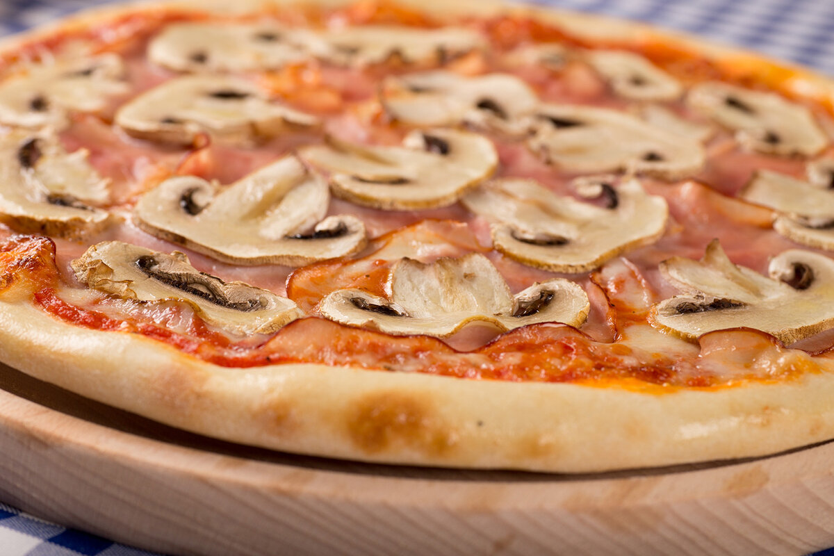Для того,чтобы приготовить такую пиццу нам понадобиться: 200г шампиньонов,100г шпика,2-3 яйца,1/2 стакана воды воды,1 ст. ложка лимонного сока,соль,перец,2 ст. ложки нарубленной зелени петрушки. Шампиньоны нарезать тонкими дольками,выложить на тесто,добавить шпик,нарезанный кубиками.Затем взбить яйца,прибавить воду,лимонный сок,посолить,поперчить,добавить зелень петрушки,все перемешать и вылить на грибы.Выпекать в духовке при средней температуре.Следуйте по инструкции,тогда у вас получится великолепная пицца,которую не стыдно будет подать к столу. Если вам понравилось и вы бы хотели еще больше таких рецептов,то подписывайтесь,комментируйте и самое главное- не забывайте ставить лайки!