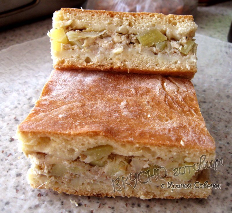 Ингредиенты Рецепт приготовления Мясо отварить заранее, охладить, пропустить через мясорубку вместе с луком. Яйца слегка взбить с солью, добавить соду, растительное масло, кефир. Хорошо перемешать, постепенно добавить муку. Замесить тесто и оставить постоять 20-30 минут. А тем временем готовим начинку. Картофель вымыть, очистить, нарезать маленькими кубиками, добавить к фаршу с луком. Добавить натертый на крупной терке твердый сыр. Посолить, поперчить и хорошо перемешать. Постоявшее тесто, разделить на 2 части (нижняя должна быть немного больше). Большую часть теста раскатать, на присыпанном мукой столе, по размеру формы и выложить, на смазанный маслом противень, сделав бортики, сверху выложить начинку. Накрыть вторым, раскатанным меньшим пластом, края защипить, проколоть в нескольких местах вилкой. Шаг 9 Поставить в нагретую до 200-220°C градусов духовку (у меня духовка газовая). Выпекать 40-50 минут. https://vkusno-gotovim.com/recepty/3986-pirog-s-myasnym-farshem-i-kartofel