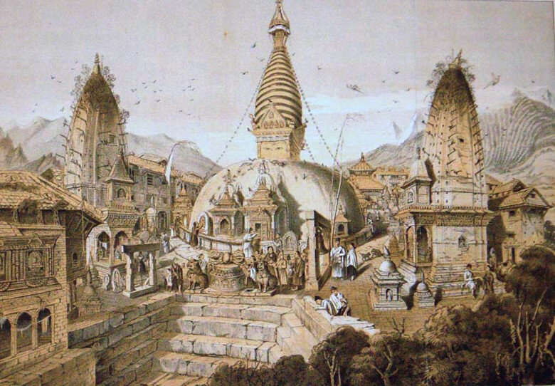 Столица Непала Катманду, а также Патан и Бактапур, два больших комплекса дворцов, находятся в обширной долине междугорья. По мнению ученых, раньше на этом месте находилось огромное озеро, а маленькие островки суши имели достаточно жалкий вид. Но об этом рассказывали и древние предания, который гласили, что над водой виднелся единственный холм под названием Сваямбунатх. Однажды под видом «самовоспламеняющегося огня» на вершину ступил пра-Будда. По писаниям буддистских последователей, пра-Будда представляет собой форму ступы, нижняя часть которой выглядит как полусфера. В ее глубине находится керамический кубик, указывающий на четыре стороны света. Верхняя же ее часть – огромная башня, отождествляющая каждым этажом ступеней познания. Такое толкование уфологам кажется не особо правдоподобным. Добравшись до вершины, начинаешь верить словам сказания, ведь поблизости больше нет ни одной возвышенности. Но остается две неразрешенные загадки: кто мог составить это сказание двести тысяч лет на