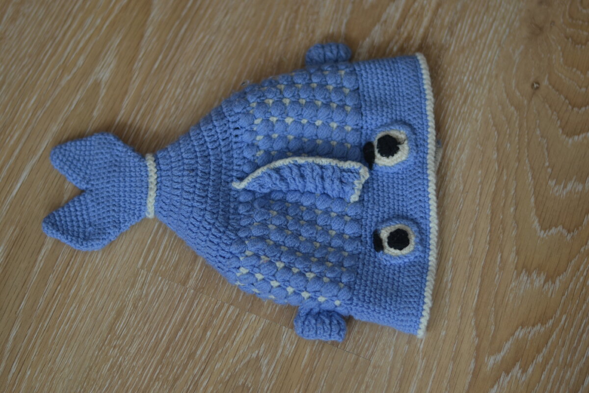 В наш век вещизма подарки своими руками имеют особую ценность. Их не купишь просто так. Не встретишь на улице брата близнеца, а главное, как тепло становится на душе, когда понимаешь, сколько труда и любви вложено в подарок. И он для тебя. Универсальный подарок для детей любого возраста - я точно знаю, о чем говорю (застала как-то отца семейства ржущего и примеряющего шапку у зеркала). Шапка-Рыбка. Она у нас имеет уже слегка потрепанный вид, это не удивительно. Шапке то уже больше пяти лет, между прочим. Не каждая рыба столько в природе живет. Вязать шапку-рыбку крайне просто. Вам понадобятся нитки, крючок и игла. Я обошлась без иглы. Вязать люблю, а шить и не умею, и не люблю. Пряжу берете в зависимости от того, на какой сезон шапчонка нужна. Общее только то, что нитки должна быть пышные. Вяжете крючком цепочку из воздушных петель, замыкаете в кольцо. Проверяете, что это кольцо по размеру подойдет на голову одариваемого. Далее по кругу вяжем столбиками без накида. У меня пол