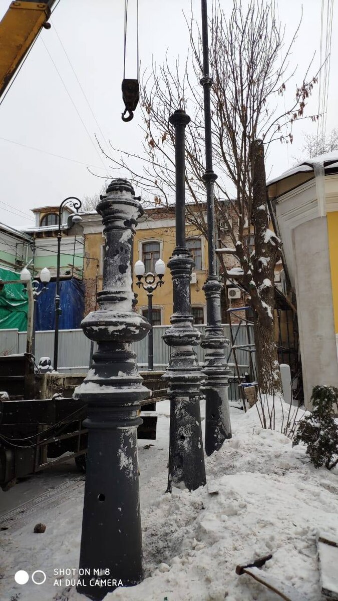 Музей "Огни Москвы" в Армянском переулке сделал горожанам замечательный подарок к Новому году: теперь во дворе музея можно полюбоваться фонарными колоннами 1896 года, которые 116 лет прятались за деревьями у станции "Каланчевская". Похожие чугунные колонны стояли на Красной площади. Их установили к коронации Николая II. Так как приезд императора для коронационных торжеств ожидался на станцию "Каланчевская", то и осветили станцию лучшим образом, установили дуговые электрические фонари. Императорский поезд в итоге прибыл на другой вокзал, а фонари так и остались на станции.