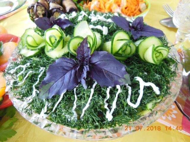 (для скромных "Восторг") Ингредиенты Шаги Салат выкладывается слоями.Всё режется соломкой.Дно тарелки смазываем майонезом. 1-слой Жаренные грибы с луком. 2-слой: Отварная куриная грудка нарезанная соломкой (варить 20 мин.с момента закипания).Промазать майонезом или сделать сеточку из майонеза. 3-слой: Корейская морковь (у меня готовая из магазина).Сеточка из майонеза 4 слой:Свежий огурец нарезанный соломкой.Сеточка из майонеза. 5 слой: Мелко нарезанная зелень (у меня укроп).Украсить по желанию.Я делала розочки из огурца. источник Подборка новогодних рецептов с символом года! ======================== Подписывайтесь на канал и ставьте лайк!
