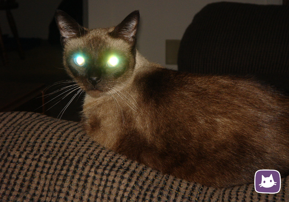 Коты - удивительные и необычные животные, свойства организма которых временами вызывают у людей не совсем здоровую реакцию. Так обстоит дело, например, со способностью кошачьих глаз светиться в темноте. Ведь именно она - основная причина суеверий и страхов, витающих вокруг представителей кошачьего рода. И даже сегодня, когда мало кто верит всерьёз в сверхъестественные способности мурлык, и их "ведьмин" взгляд, люди чувствуют себя не в своей тарелке, глядя в светящиеся глаза любимых питомцев. Так в чем же состоит истинная причина этой пугающей суперспособности? Минутка кошачьей анатомии... Первое, о чем сразу следует сказать - нет в мире такого животного, глаза которого были бы способны источать свет. И коты здесь не являются исключением! Ведь, если вы обращали на это внимание, когда мурлыка находится в кромешной темноте, она ничем не выдает своего положения. А объяснить феномен их "сверкающих в темноте" глаз очень просто. На их дне находится особый слой клеток, называемый тапетум луци