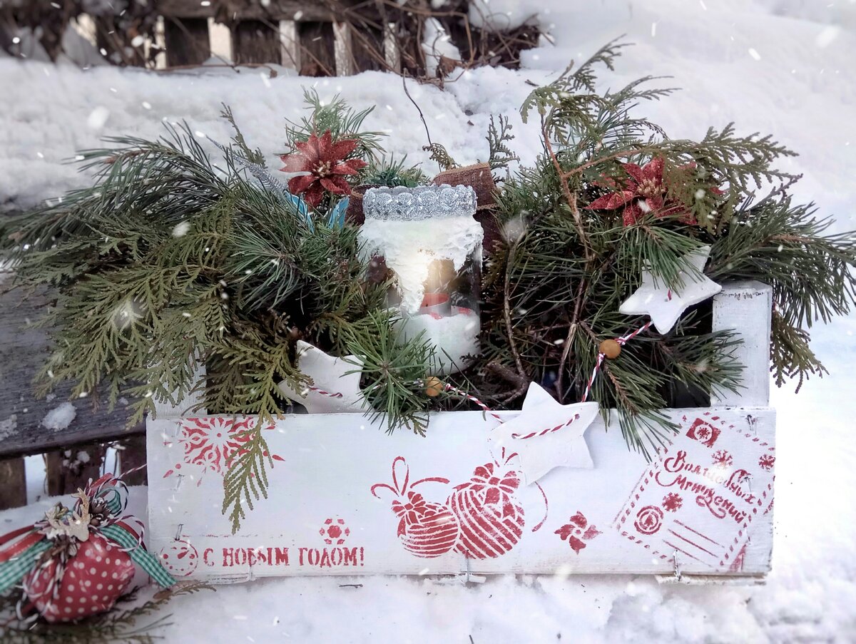 🎄Новогодний ящик из продуктового! Простой декор с помощью трафаретов 🎬 Видео❄️