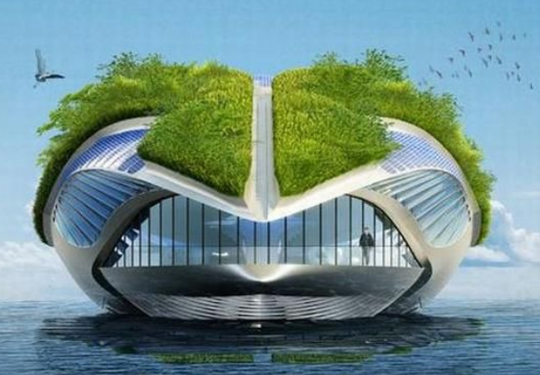 Удивительный и фантастический корабль – он как будто прибыл из сказки. Речь идет о творении архитектора из Франции. Между прутьями пластика и металлическими листами виднеется живая зелень. В сочетании с интересной формой строения и красивой подсветкой создается необычный эффект. Это творение можно считать настоящим, плавающим по воде садом. Кроме этого корабль имеет и другие функции – на нем располагается выставочный зал и лаборатория. Плюс ко всему сооружение исполняет роль фильтра на реке.