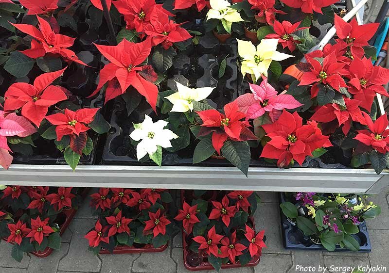 В XIX веке в Америку пуансеттию привез Роберт Пуансетт (Joel Robert Poinsett), первый посол США в Мексике, страстный охотник за растениями, интродуктор и путешественник, исколесивший в поисках новых видов всю Мексику. Тогда ему очень приглянулся красивый кустарник с крупными красными «цветками», и он решил его размножить. А сегодня это растение настолько популярно в Америке, что ему даже посвящен отдельный праздник: 12 декабря в США национальный день пуансеттии. Практически 100% пуансеттии продается в предрождественские дни, примерно половину объема продаж составляют сорта с красными прицветными листьями. Стволик у пуансеттии прямостоячий, ветвящийся, боковые побеги толстые, голые. Листья продолговато-овальные с заостренной верхушкой, голые или опушенные. В отличие от большинства молочаев пуансеттия не ядовита. Мелкие цветки, невзрачные листочки обертки мало заметны. Эффектный вид растению придают спирально расположенные прицветные листья (брактеи), которые могут быть бе