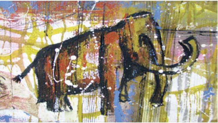 Сей тезис неожиданно подтверждает очень эффектный цикл «Водопады Америки» — мы видели много фотографий этих знаменитых водопадов, но такими их не видел никто. Такими они остались в душе художника, и он поделился этим впечатлением со зрителями. Наиль Вагапов много путешествовал в реальности — побывал в 37 странах, но я увидела на стенах выставочного зала самое удивительное путешествие «Вперед в прошлое» — цикл по мотивам палеографики: мамонты и носороги, бизоны и охотники. Цвета охры и крови — воспоминания из нашего ДНК.