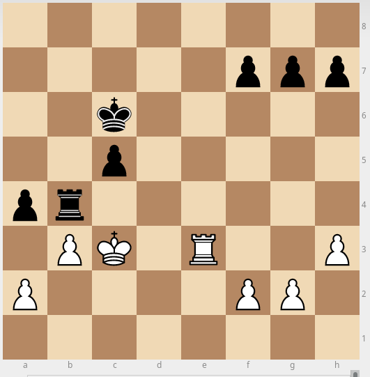 3... axb3 4. Kxb3 Kd5 5. Kc3 c4 6. f4 f5 7. h4 h5 8. a3