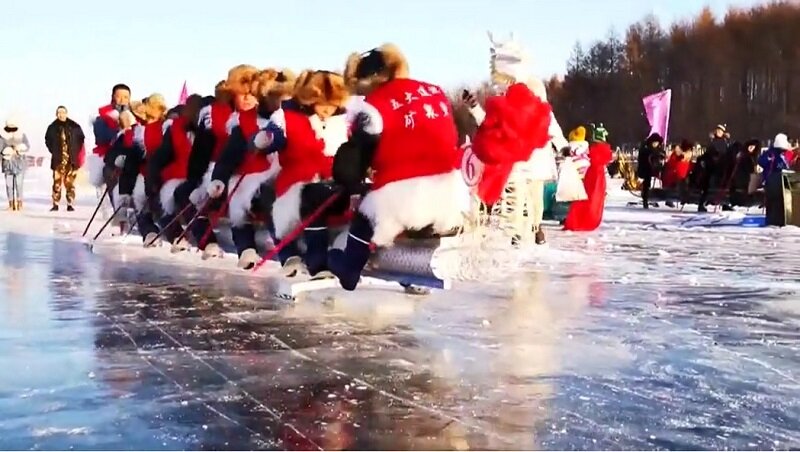 На северо-востоке Китая, в провинции Хейлуцзян, в городе Удаляньчи традиционно устраиваются молодежные ледяные регаты. В Китае эти зимние состязания принято называть «битва ледяных драконов». Дело в том, что каждая лодка несет на носу закрепленную на форштевне резную деревянную голову дракона, причудливо расписанную яркими красками.