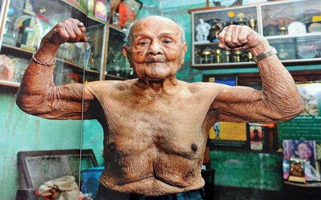 В данной статье я расскажу вам про бодибилдера которому занятия с железом помогли прожить долгую, здоровую полноценную жизнь. Ему удалось прожить целых 104 года, при этом практически до конца жизни он тренировался и был в здравом уме. Зовут нашего сегодняшнего героя Манохар Айч, родом он из Индии, родился в 1912 году, в бедной семье. С детства был очень активным и начал заниматься в домашних условиях используя при этом вес тела, атлет выполнял такие упражнения как отжимания, подтягивания, приседания, также бегал и приседал на одной ноге. Уже в более зрелом возрасте начал выступать в силовых шоу , где гнул различные стальные предметы, именного тогда он стал включать в свои тренировки работу со штангой и гантелями. В 1942 году поступил на службу в королевские войска, Индия тогда было колонией Великобритании, и через время атлет принял участие в массовых акциях против правительства, за что был отправлен в тюрьму. Там он тренировался с использованием собственного веса тела, уже в 1947 го
