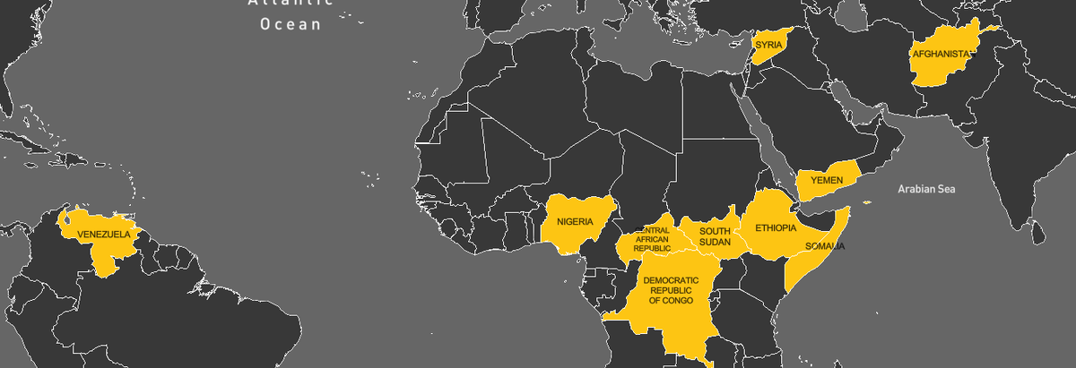 Комитет составил рейтинг 10 стран, которые испытывают - или находятся на грани - худшего гуманитарного кризиса в мире.