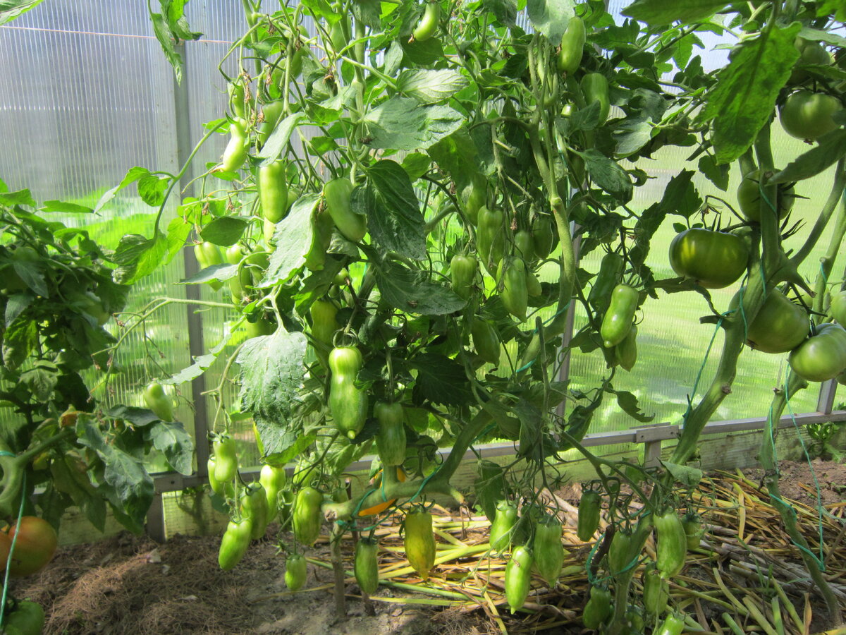 Сейчас одним из модных и нашумевших сортов томатов считается сорт «Банановые ноги». Не поняла только, почему? За какие такие удивительные качества его все хотят попробовать вырастить? Фирма «Партнер» продает семена от 90 рублей до 120 рублей за 10 штук. Ума не приложу, за что? Я этот сорт каким-то супер сортом не считаю. Напишу, почему. Выращивала я эти томаты в сезоне 2018 года. Посадила два куста в теплицу. Так как высота кустов обещалась быть не высокой, то разместила их около поликарбоната. Кусты и действительно были не высокими, где-то до 1 метра. Этот сорт относится к детерминантным сортам, поэтому увлекаться пасынкованием не стоит. Я растила в два ствола. Думаю, что надо было в три или четыре, тогда урожайность была бы выше. По строению куста, я отнесла бы его к хилому типу. Веточки тонкие, листочки ажурные. В описании к этому сорту сказано, что он ранний. По моим наблюдениям, я бы его отнесла к среднеспелым. У меня первые помидорки созрели в середине июля. Пока помидоры еще не
