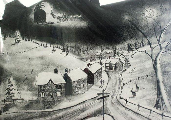 Принцип рисования достаточно прост. Сначала, художник распыляет на стекла поддельный снег, а потом берет кисть и создает свои «оконные» шедевры. Выглядит отдаленно похоже на рисунки, которые создает мороз в зимнее время на окнах, с той лишь разницей, что у Тома все объекты на стеклах четкие и осознанные.