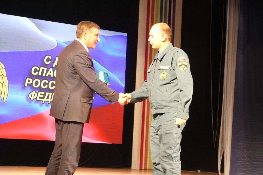 В городском Дворце культуры прошло торжественное собрание, приуроченное Дню спасателя. Виновников торжества с праздником поздравил первый заместитель мэра г. Биробиджана Андрей Пивенко. Слова благодарности за нелёгкую службу звучали в адрес пожарных, спасателей, инспекторов ГИМС, сотрудников пожарного надзора. - Поздравляю Вас с профессиональным праздником – Днем спасателя Российской Федерации, - обратился к участникам торжественного собрания Андрей Васильевич. - Спасение человеческой жизни – сложная, ответственная и почетная работа, требующая высокой квалификации и самоотверженности. Именно эти качества отличают сотрудников экстренных служб. Вы неоднократно доказывали свое высокое мастерство и эффективность в экстремальных ситуациях. Вы первыми направляетесь туда, где людям требуется помощь. У вас нелегкая, очень благородная и нужная профессия, в которой на первое место выходят такие качества как самоотверженность, поддержка, честность. Поэтому случайных людей в ней не бывает. Иначе