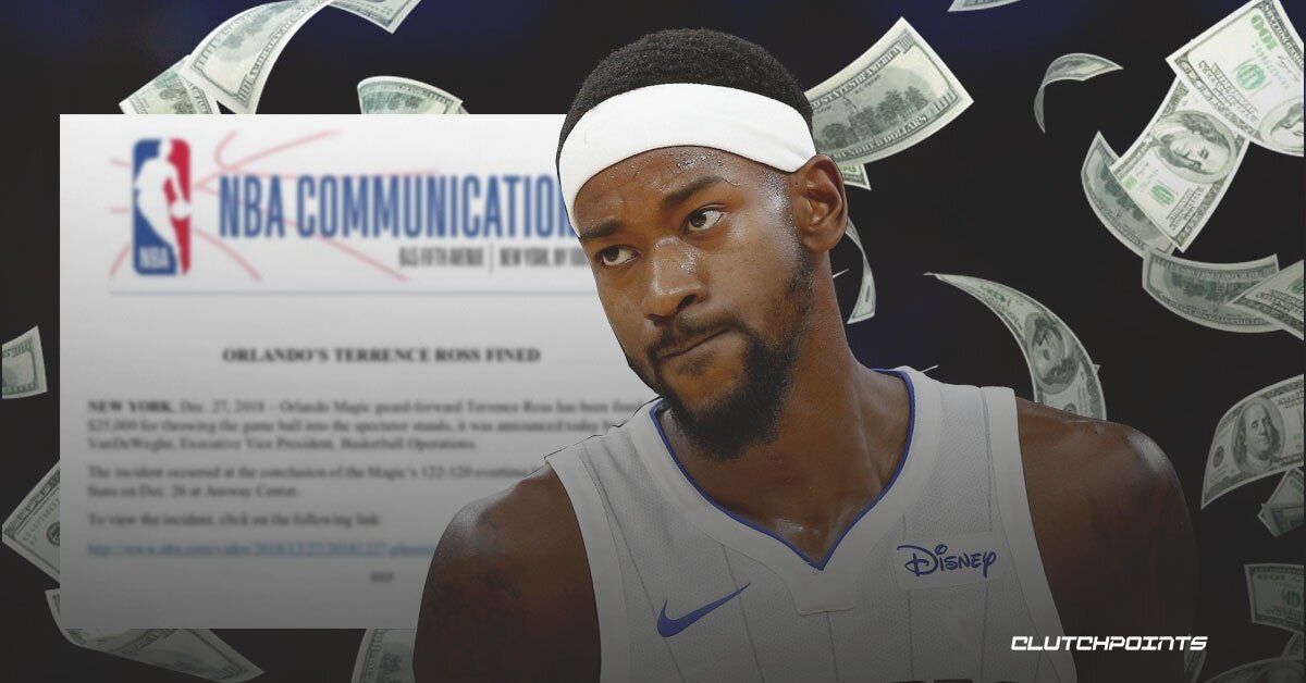 Защитник «Орландо» Терренс Росс оштрафован лигой на 25 000 долларов за то, что бросил мяч на трибуны, сообщает ESPN.com.