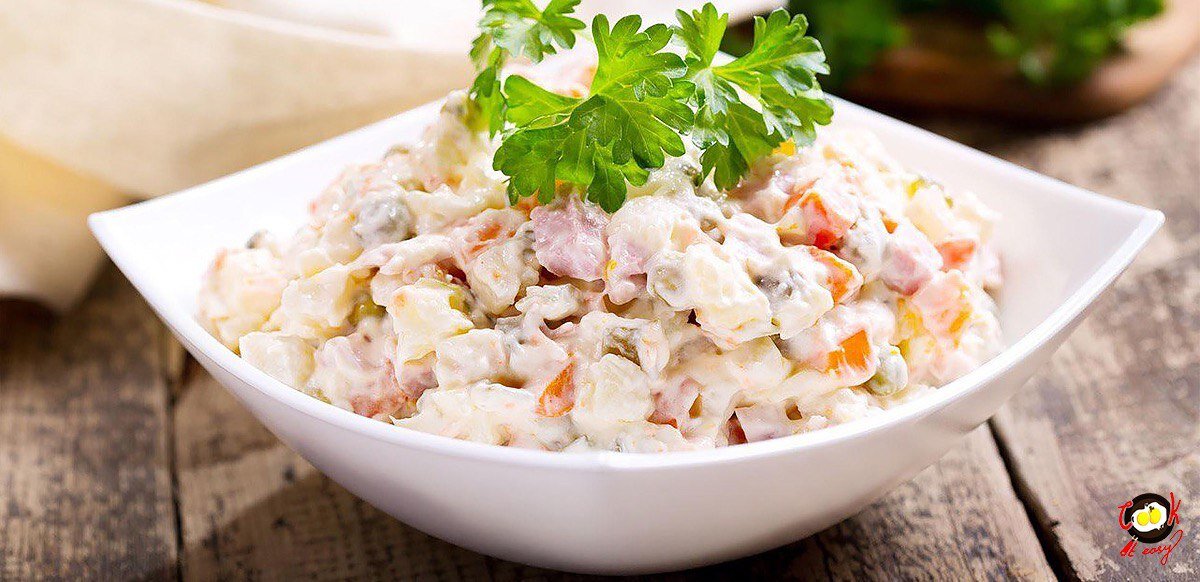 Какие у вас ассоциации Новым годом, кроме 🍊 ? Ну конечно же, наш с вами любимый салат "Оливье"! Это один из самых популярных блюд праздничного новогоднего стола, и абсолютно заслуженно. Мы не могли обойти его своим вниманием, предлагаем отведать ложечку салата перед боем курантов. Кстати говоря, в некоторых регионах России салат именуют зимним, московским и др. Но по сути это все один и тот же "Оливье". Нам понадобится: Колбаса вареная - 100 гр. Морковка - 1 штука Горошек консервированный - 1 банка Вареный картофель - 2 штуки Яйцо - 2 штуки Огурчик соленый - 1 штука Майонез - 3 столовые ложки Зелень Соль Классический рецепт приготовления салата "Оливье": Налить в кастрюлю небольшое количество воды, сварить в ней морковь и картофель. В отдельной емкости сварить вкрутую пару куриных яиц. Пока они готовятся, можно заняться нарезками. Порезать мелкими кусочками колбасу, маринованный или соленый огурчик. Как правило, для салата выбирается докторская колбаса, но как вы понимаете, это не с