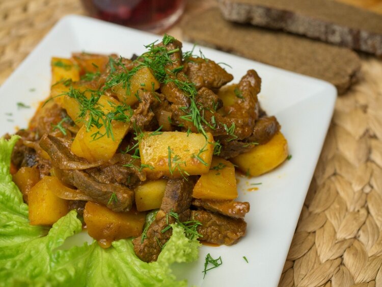 Сегодня дорогие друзья мы поговорим про татарское блюдо «азу». Рецептов в мире очень много, поэтому разберем классическое азу именно по-татарски, потому что есть еще и в русской кухне подобное. Ну и естественно готовится оно только из говядины и в казане (лучше из чугуна). Для приготовления на нужно будет: · 0.5 кг – говядины; · 8 шт. – картошки; · 1 шт. – морковки; · 2 шт. – луковицы и чеснока; · 2 шт. – огурцов соленых; · 3 шт. – помидор; · 200 гр. – масла (топленого); · Перец и соль по вкусу. Переходим к самой готовке: 1. Режем мясо брусочками и выкладываем в посудину. 2. Режем лук, огурцы, морковку и чеснок. 3. Берем казан и очень хорошо его разогреваем, затем в масле (топленом) жарим мясо, до не большой корочки. Выкладываем мясо в другую посудину и убираем в сторонку. 4. После всего этого добавляем лук в казан с маслом и жарим его до цвета золота. 5. Как только лук приобретает золотой цвет, закладываем обратно мясо, морковку, соль и перец, и перемешиваем все. Затем немног