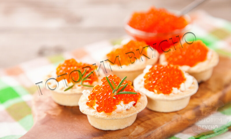 Эффектная и простая закуска с красной икрой в домашних корзиночках