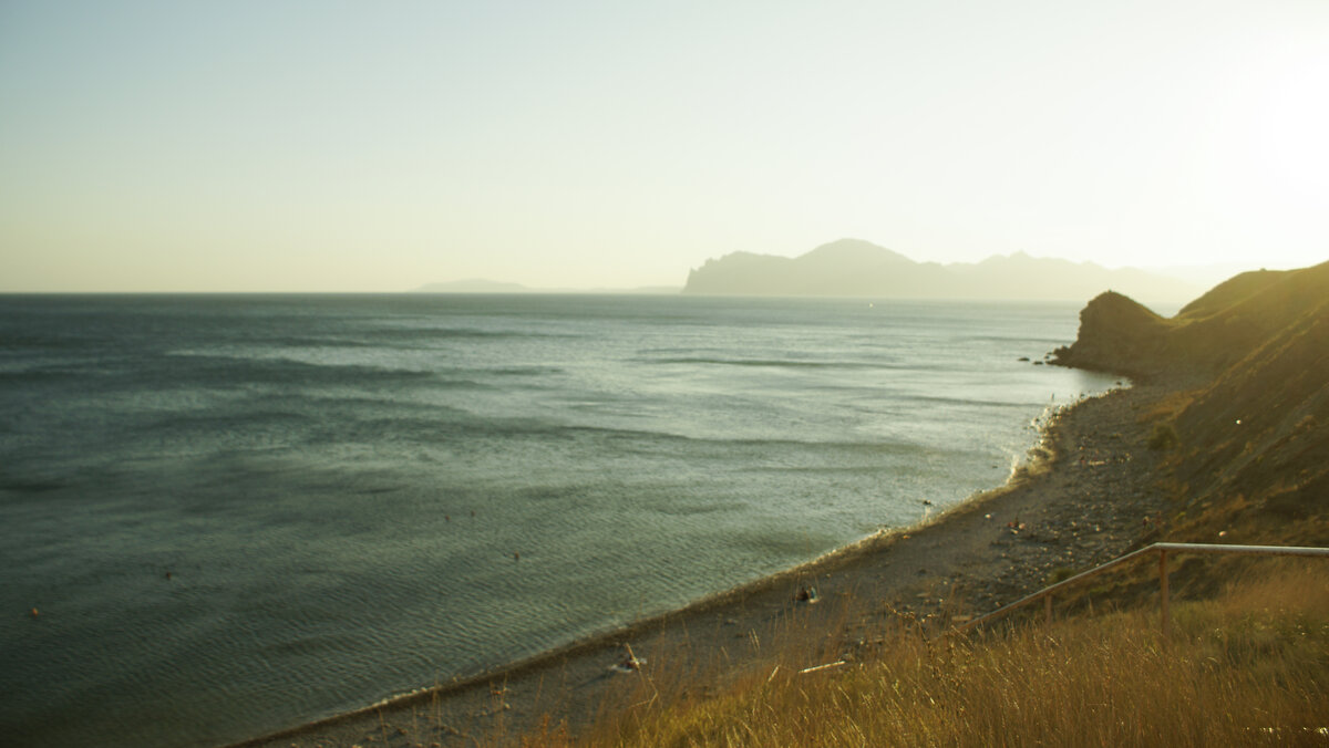 Усилившиеся волны вынудили нас ездить на пляж в Орджоникидзе, где волны практически нет, но большое количество народа нас простимулировало к поиску дополнительного места купания. Нашли мы его проехав по центральной улице мимо пристани. Пляж галечный. Из минусов длинная лестница.
