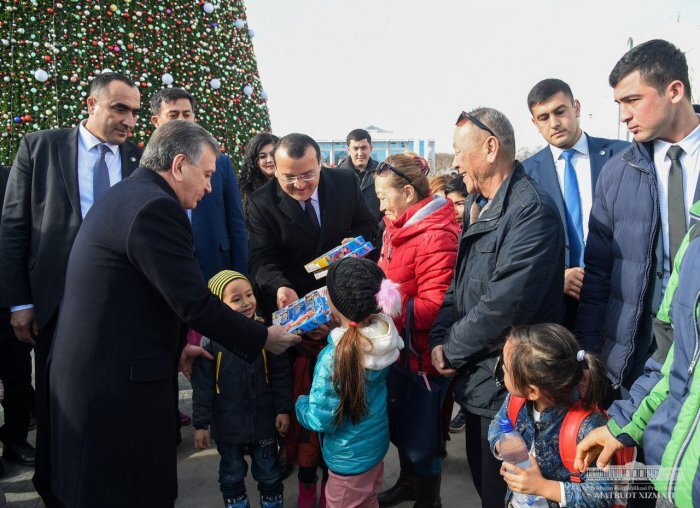 Президент Узбекистана порадовал жителей появлением у новогодней елки