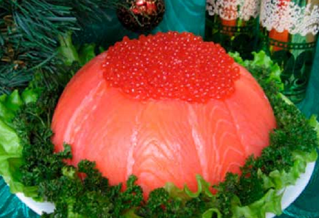 Новогодний салат "Бочонок" - с красной рыбой и икрой