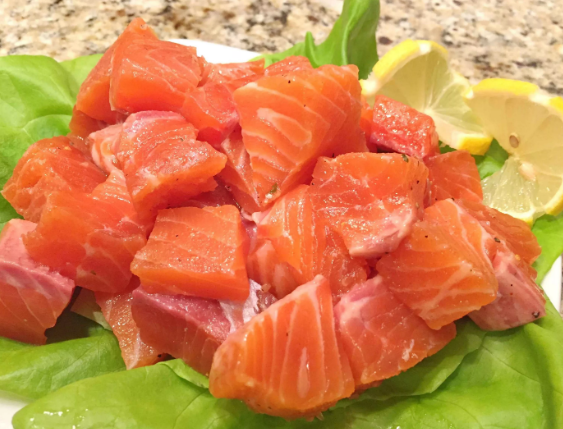 Источник незаменимых для организма омега-з кислот - красная рыба. Этот продукт незаменим при похудении, так как помогает сохранить упругость кожи, а также поставляет в организм массу полезных веществ. Добавив к этому низкую калорийность (около 200 калорий в зависимости от части тушки и сорта), получаем идеальный диетический продукт. Можно купить готовую рыбу, но это дороже, плюс в ней консерванты, а можно посолить красную рыбу самостоятельно. Я использую не только традиционный сухой посол, но и еще один оригинальный метод, о котором хочу рассказать. Что потребуется А дальше все просто: режем филе на мелкие кубики размером примерко 1,5 на 1,5 см, складываем их в контейнер или банку с герметичной крышкой, добавляем лимонный сок, сахар, соль и энергично трясем в течение четверти часа. Рыба получается нежнейшая, слабосоленая и готова к употреблению сразу. Единственный ее минус - цвет несколько изменяется, становится более бледным за счет лимонного сока. К слову, кр