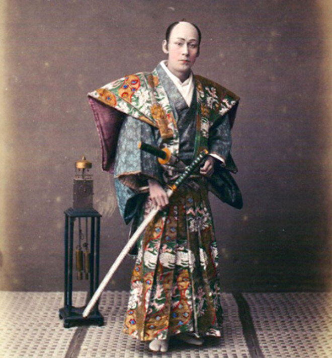 Практика ношения мечей так, чтобы любой из них можно было быстро выхватить и нанести удар, в Японии появилась уже очень давно, задолго до объединения страны под властью Токугавы и окончания эпохи междоусобиц. Еще до появления катаны и вакидзаси засунутыми за пояс лезвием вверх носились их предшественники - косигатана, утигатана и т.п. Боевые мечи тати подвешивались к поясу лезвием вниз только по одной причине - они были слишком длинными, чтоб их можно было быстро вытащить. Но! Несмотря на общую агрессивную манеру ношения (всем своим обликом самурай как бы демонстрировал, что готов к атаке в любой момент), вопреки ей или благодаря ей, в Японии сложились очень строгие правила этикета меча. Они касались того, как именно нужно располагать руки относительно оружия, когда ты просто идешь по улице, как класть около себя мечи, если пришел к кому-то в гости, и т.п. Японский этикет, точно так же, как и любой другой, вырос из правил "гражданской безопасности". И самым главным из них было: "Нельзя